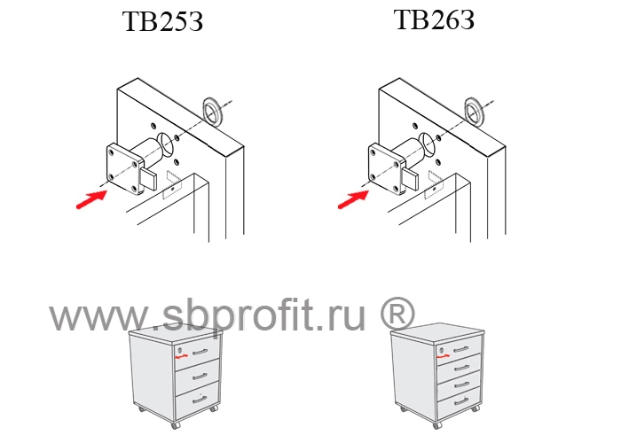 В метабоксах, в отличие от роликовых направляющих, боковиной ящика является часть системы направляющих, вторая часть метабокса аналогичная роликовым направляющим и крепится к боковой стенке корпуса тумбы.