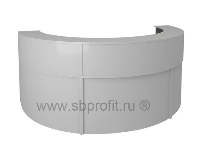Наружний габарит композиции из трех секторов - 2660х1330, внутренний размер (по краю столешницы) - 1200х600.Эргономиная приемная стойка выполнена из ЛДСП, толщина столешницы столов 22 мм, остальные детали изготовлены из плиты 16мм.