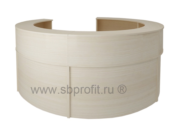Наружний габарит композиции из пяти секторов - 2660х2500, внутренний размер (по краю столешницы) - 1200х1000Эргономиная приемная стойка выполнена из ЛДСП, толщина столешницы столов 22 мм, остальные детали изготовлены из плиты 16мм.