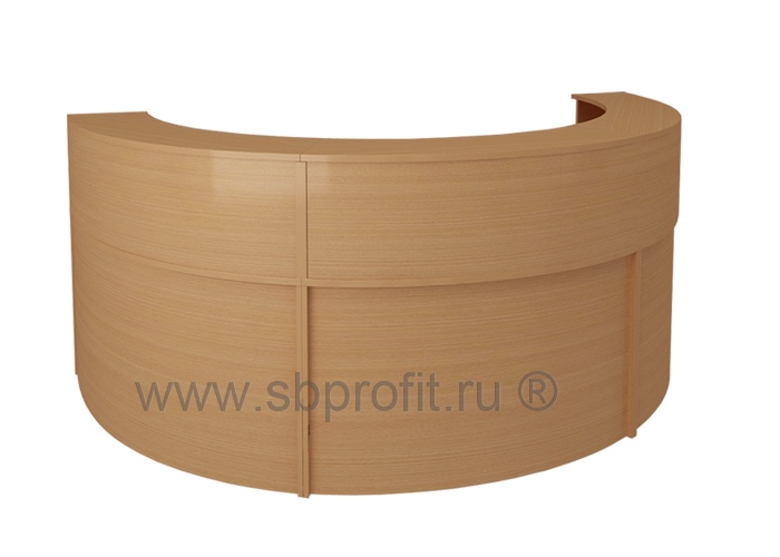 Наружний габарит композиции из трех секторов - 2660х1330, внутренний размер (по краю столешницы) - 1200х600.Эргономиная приемная стойка выполнена из ЛДСП, толщина столешницы столов 22 мм, остальные детали изготовлены из плиты 16мм.