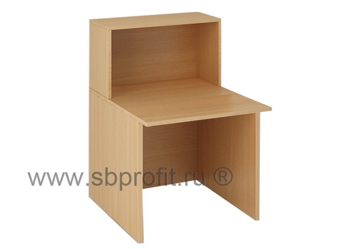 Приемная стойка выполнена из ЛДСП, толщина столешницы столов 22 мм, остальные детали изготовлены из плиты 16мм.Торцы деталей обработаны противоударной износостойкой кромочной лентой ПВХ толщиной 2 мм. Укомплектована регулируемыми по высоте опорами.