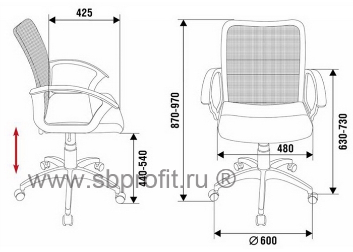 Высота кресла MIN 870мм