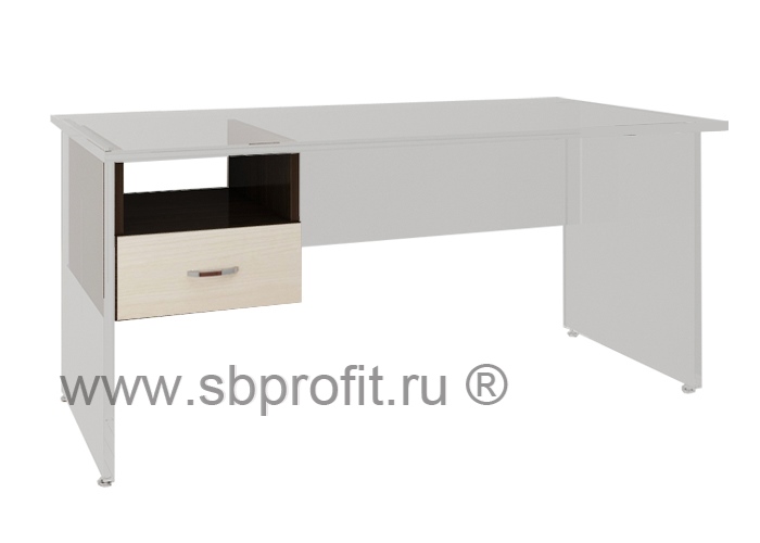 Все лицевые торцевые поверхности защищены противоударной кромкой ПВХ, толщиной 2 мм. Все внутренние торцевые поверхности защищены кромкой ПВХ 0,4 мм. Материал - ЛДСП, меламиновое, антибликовое покрытие. Толщина каркаса тумбы, ящиков и лицевых панелей ящиков 16 мм.Механизма выдвижения ящиков - Метабокс