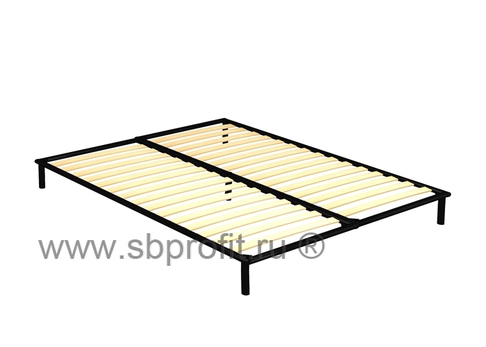 Ортопедическое основание состоит из металлического каркаса, усиленного в центральной части, выполненного с использованием профильной трубы сечением 30мм и накладных гнутоклееных берёзовых ламелей, закрепленных к металлическому каркасу с помощью пластиковых латодержателей.Основание устанавливается на четыре-пять металлических опор диаметром 50мм. Четыре опоры крепятся по углам к каркасу с помощью металлокронштейнов и мебельных болтов через сквозные отверстия. В случае ширины основания 1200мм и более, одна опора крепится болтом непосредственно к ортопедическому основанию в центральной усиленной части.
