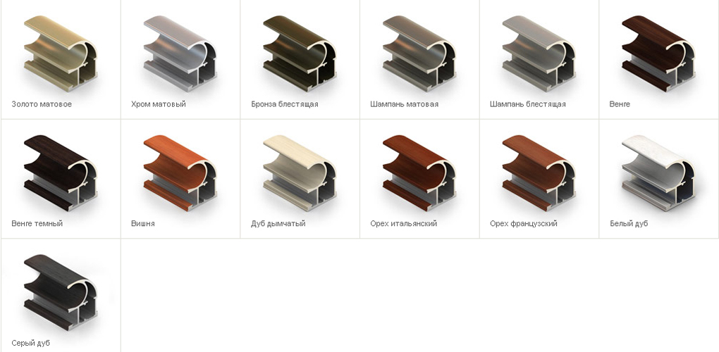 Двух ходовая система "Aristo", с нижними опорными роликами. Плавное и бесшумное движение. Верхняя и нижняя направляющие, верхние направляющие и нижние опорные ролики, ограничительные стопоры, пылезащитные щетки в комплекте. Травмобезопасные (с защитной пленкой с обратной стороны зеркальные вставки)Цвета профилей доступные для заказа:
