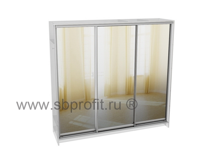 Двух ходовая система "Aristo", с нижними опорными роликами. Плавное и бесшумное движение. Верхняя и нижняя направляющие, верхние направляющие и нижние опорные ролики, ограничительные стопоры, пылезащитные щетки в комплекте. Травмобезопасные (с защитной пленкой с обратной стороны зеркальные вставки)Цвета профилей доступные для заказа: