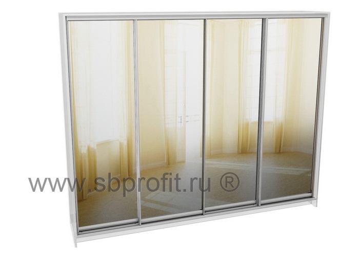 Двух ходовая система "Aristo", с нижними опорными роликами. Плавное и бесшумное движение. Верхняя и нижняя направляющие, верхние направляющие и нижние опорные ролики, ограничительные стопоры, пылезащитные щетки в комплекте. Травмобезопасные (с защитной пленкой с обратной стороны зеркальные вставки)Цвета профилей доступные для заказа: