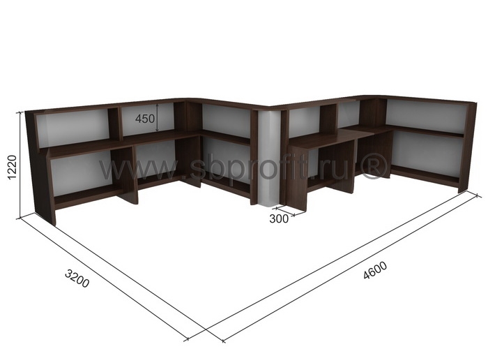 Ресепшен Тензор - современная модульная офисная стойка ресепшн. Для компоновки ресепшна используются отдельные прямые модули, составляемые в ряд и угловые модули 90 градусов.Технические характеристики: