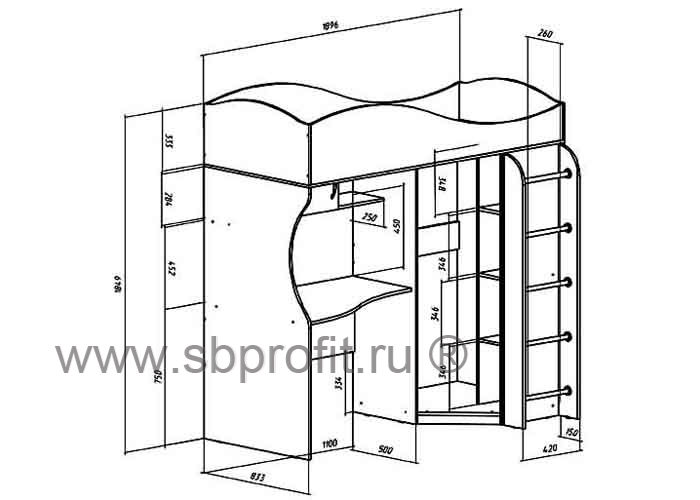 Детская Буратино выполнена из высококачественных материалов согласно ГОСТ и сертифицирована для использования в качестве детской мебели. Материал ЛДСП, кромка ПВХ, высокопрочная лестница. Ниша под матрас 800х1860 мм. Функциональный шкаф + подкатная тумба.Вес изделия 145,7 кг., объём 0,31 м. куб. количество упаковок 8 шт.