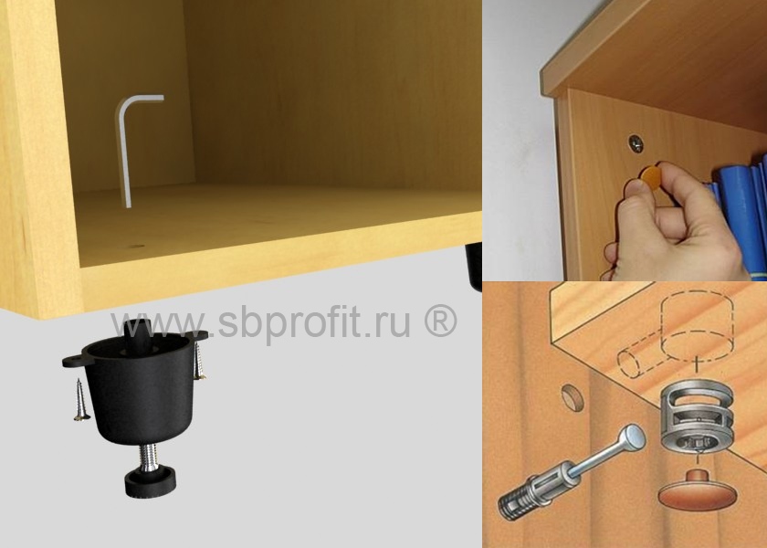 Опоры: пластиковые регулируемые.