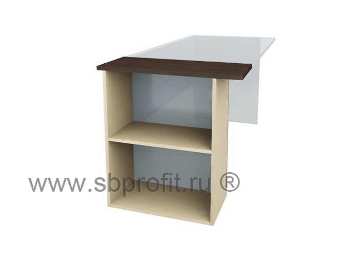 Толщина деталей изделия: каркас, полки  изготовлены из плиты 16 мм, топ-крышка 22 мм. Задней стенки не имеет.