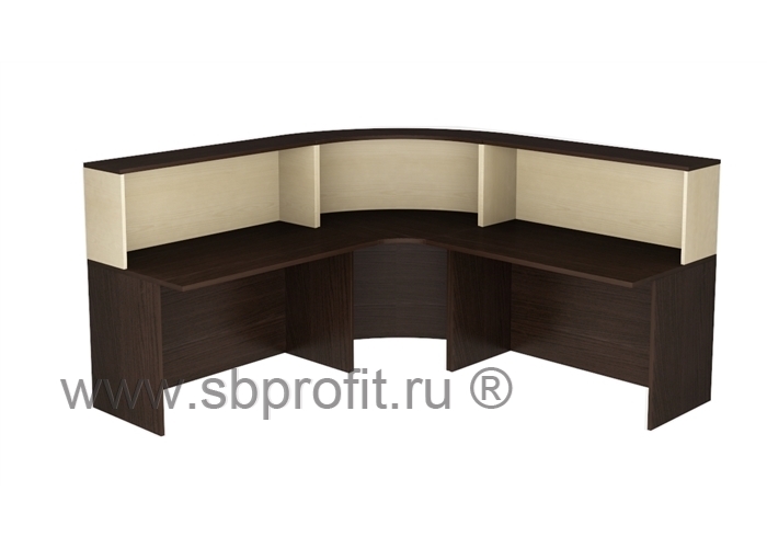 Приемная стойка выполнена из ЛДСП, толщина столешницы столов 22 мм, остальные детали изготовлены из плиты 16мм.Торцы деталей обработаны противоударной износостойкой кромочной лентой ПВХ толщиной 2 мм. Укомплектована регулируемыми по высоте опорами.