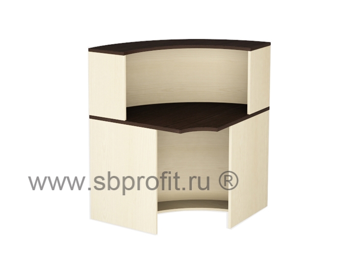 Приемная стойка выполнена из ЛДСП, толщина столешницы столов 22 мм, остальные детали изготовлены из плиты 16мм.Торцы деталей обработаны противоударной износостойкой кромочной лентой ПВХ толщиной 2 мм. Укомплектована регулируемыми по высоте опорами.