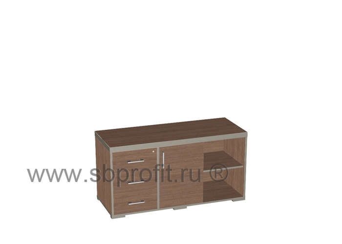 Тумба выполнена из ЛДСП, толщиной 48/18 мм. Торцевые поверхности обработаны 3D акриловой кромкой, толщиной 2 мм. Нерегулируемые пластиковые опоры. Тумба оснащена скрытыми направляющими полного выдвижения TANDEM (Blum, Австрия), обеспечивающие плавное и бесшумное закрывание и механизмом самозакрывания BLUMOTION. Замок в верхнем ящике. Дверь раздвижная.