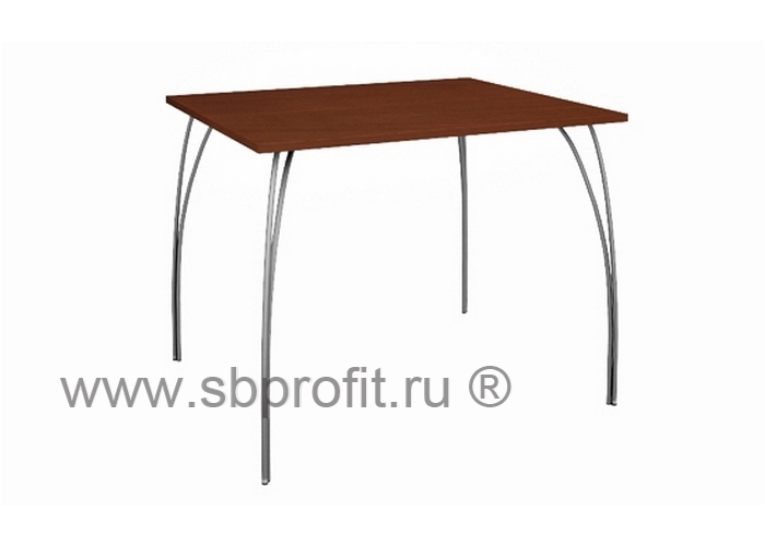 Толщина столешницы - 22мм. Все лицевые торцевые поверхности защищены противоударной кромкой ПВХ, толщиной 2 мм.Материал опор - стальные трубы дугообразной формы диаметром 22мм, окрашенные порошковой эмалью, регулировки по высоте не имеют. Оснащены треугольным фланцем для надежного крепления к столешнице.