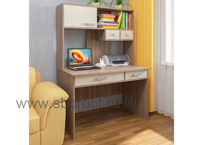 Стол для дома и офиса СК-2 - это простая и вместе с тем современная модель. Стол содержит только все необходимое для эффективной работы. В верхней части надстройки стола имеется открытая ниша, под которой расположены два небольших выдвижных ящика. Левая часть надстройки оснащена нишей с закрытой распашной дверцей. Крыша надстройки позволяет расположить сверху оргтехнику и акустическую систему. В столе предусмотрены также два удобных выдвижных ящика, имеющих разный размер, что является большим плюсом. Стол выпускается как в однотонных, так и в комбинированных цветах.Изделие выполнено из высококачественной экологичной ламинированной плиты класса Е1. Для сборки используется ударопрочная кромка ПВХ и фурнитура ведущих мировых производителей. Упакован стол в плоский гофрокартон. Внутри упаковки имеется подробная инструкция по сборке. Гарантия на изделие 12 месяцев.