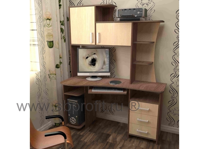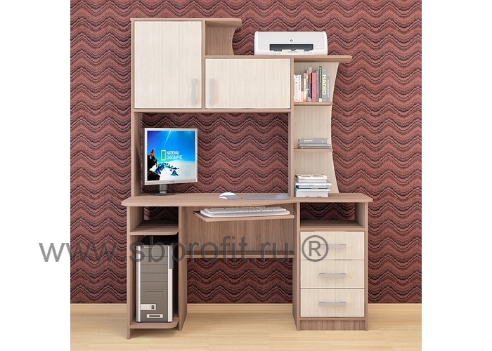 СК-19 - большой, вместительный и очень удобный компьютерный стол для работы и учебы. Здесь и широкая столешница, и обилие шкафов и полок. Так, модель снабжена стационарной тумбой с тремя вместительными выдвижными ящиками и открытой нишей. Рядом под столешницей есть полка для документов. На столе можно установить как стационарный компьютер, так и ноутбук. Для первого случая предусмотрена выкатная тумба для клавиатуры и отдельная ниша под системный блок или же портфель, сумку. Если говорить о верхней части стола, то надстройка содержит различные по вместимости полки, и 2 закрывающихся шкафчика с распашными дверцами. Крыша надстройки позволяет также использовать дополнительную полезную площадь для размещения оргтехники, акустики, папок и любых аксессуаров.Изделие выполнено из высококачественного и экологичного материала – ЛДСП класса Е1 толщиной 16 мм. Все края обработаны ударопрочной кромкой АБС, которая значительно увеличивает срок эксплуатации изделия. Для сборки изделия используется фурнитура ведущих мировых производителей. Упакован стол в плоский гофрокартон. Внутри имеется подробная инструкция по сборке. Гарантия на изделие 24 месяца.