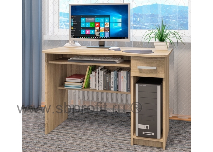 Стол компьютерный СК-23 – идеальный вариант для дома и офиса. Работать за таким столом – одно удовольствие. Ведь простая конструкция дополняется функциональностью и вместительностью. Так, за счёт размеров столешница вмещает в себя не только компьютер или ноутбук, но и оргтехнику и документы. Также стол имеет выкатную полку для клавиатуры, выдвижной ящик для канцелярских принадлежностей, нишу для системного блока и открытую полку в нижней части стола. В данной модели не предусмотрена надстройка вследствие чего увеличивается рабочая площадь.Изделие выполнено из высококачественного и экологичного материала – ЛДСП класса Е1 толщиной 16 мм. Края обработаны ударопрочной кромкой АБС, которая значительно увеличивает срок эксплуатации изделия. Для сборки изделия используется фурнитура ведущих мировых производителей. Упакован стол в плоский гофрокартон. Внутри упаковки имеется подробная инструкция по сборке. Гарантия на изделие 24 месяца.