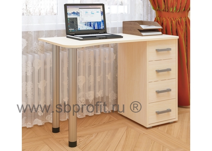 Стол СК - 27 интересен своей простотой и уникален практичностью. Главное преимущество заключается в простой, широкой столешнице без надстроек и прочих деталей, что даёт просторную рабочую площадь. А для хранения письменных принадлежностей и бумаг предусмотрены 4 выдвижных ящика с шариковыми направляющими, которые гарантируют полное выдвижение. Столешница с одной стороны опирается на хромированные опоры, которые подчёркивают минимализм и современный дизайн изделия. Данная модель стола пользуется необыкновенной популярностью в работе дома и в офисе.Изделие выполнено из высококачественного и экологичного материала – ЛДСП класса Е1 толщиной 16 мм. Все края обработаны ударопрочной кромкой ПВХ, которая значительно увеличивает срок эксплуатации изделия. Для сборки изделия используется фурнитура ведущих мировых производителей. Упакован стол в плоский гофрокартон. Внутри имеется подробная инструкция по сборке. Гарантия на изделие 24 месяца.