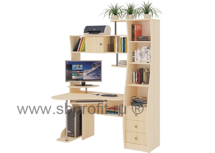 Угловой стол СК-34 – одна из самых популярных моделей. Современный и практичный, СК-34 украсит даже самый изысканный интерьер и послужит отличным помощником в работе и учёбе. В арсенале стола всё необходимое: просторная столешница, выкатная полку для клавиатуры, ниша под системный блок и даже подставку для монитора. Также одно из преимуществ модели – встроенный пенал для документов и книг с открытыми нишами сверху и выдвижными ящиками снизу. Ну а надстройка стола красиво и стильно оформлена хромированными трубами, имеет открытые полки и ниши, а также закрытый шкафчик, выполненный в виде сейфа.Изделие выполнено из высококачественного и экологичного материала – ЛДСП класса Е1 толщиной 16 мм. Все края обработаны ударопрочной кромкой ПВХ, которая значительно увеличивает срок эксплуатации изделия. Для сборки используется фурнитура ведущих мировых производителей. Упакован стол в плоский гофрокартон. Внутри упаковки имеется подробная инструкция по сборке. Гарантия на изделие 12 месяцев.