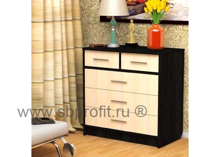 Компактный и функциональный комод К-10 давно стал любимчиком покупателей. Благодаря своим размерам, модель выглядит аккуратно, не занимает много места, но в то же время вмещает довольно много. Также удобно и расположение ящиков:3 больших удобных вместительных ящика на роликовых направляющих, а в верхней части - еще 2 дополнительных ящика для мелочей. Основой комода является собственный плинтус, что позволяет комоду прочно и надежно стоять на полу.Комод изготовлен из высококачественной и экологичной ламинированной плиты – ЛДСП класса Е1 толщиной 16 мм. Все края изделия обработаны ударопрочной кромкой ПВХ, что значительно увеличивает срок службы изделия. Для сборки используется фурнитура ведущих мировых производителей.