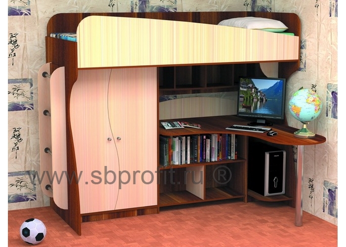 Детский комплекс Маугли отличается функциональностью. Здесь ребёнок сможет учиться, заниматься творчеством, хранить свои вещи и отдыхать. Во-первых, здесь предусмотрено просторное спальное место размером 200х90 с удерживающими бортиками.Также предусмотрен полноценный письменный стол, который «вырастает» из комплекса и опирается на хромированную трубку. Рядом – полки для книг, письменных принадлежностей, а значит, всё необходимое для учёбы и творчества будет под рукой. В нижней части стола оборудована ниша под системный блок и вместительные полки.