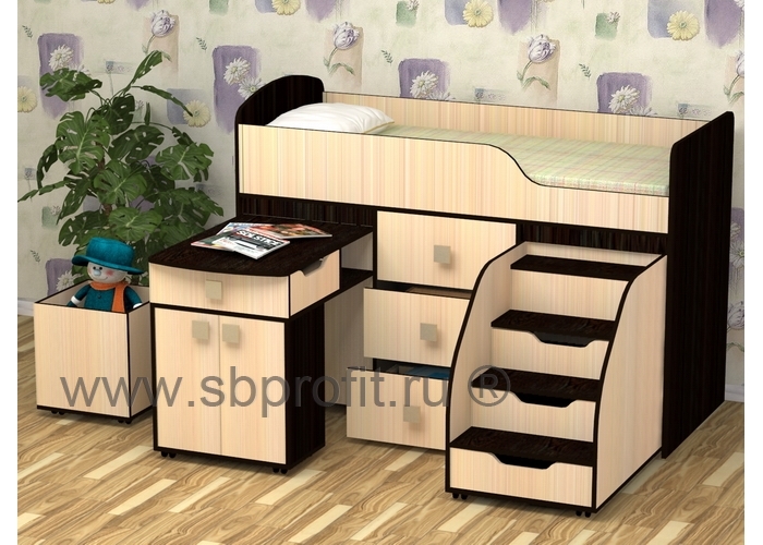 ФЕЯ – это не просто кровать, а целый детский комплекс, где ребёнок может учиться, играть и отдыхать. Кровать выдержана в современном стиле, является очень функциональной, чем и заслужила свою популярность.