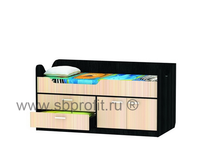 МИШКА - это практичная и удобная кроватка для детей. Она эргономична и современна: содержит спальное место размером 160х80 см. Конструкция выполнена с усилениями жесткости для спального места, что создает изделию особую прочность. Также установлен удерживающий бортик, чтобы ребёнок не упал во время сна. В нижней части кровати расположены удобные выдвижные ящики и комод с распашными дверцами. Здесь ребёнок сможет хранить вещи и игрушки. Яркая и компактная кровать Мишка станет любимым местом отдыха ребёнка и украсит собой любой интерьер.Кровать изготовлена из качественного ламинированного ДСП толщиной 16 мм класса Е1, обеспечивающего необходимую прочность и долговечность деталей. Все края обработаны ударопрочной кромкой ПВХ, которая значительно увеличивает срок эксплуатации изделия. Для сборки используется фурнитура ведущих мировых производителей.