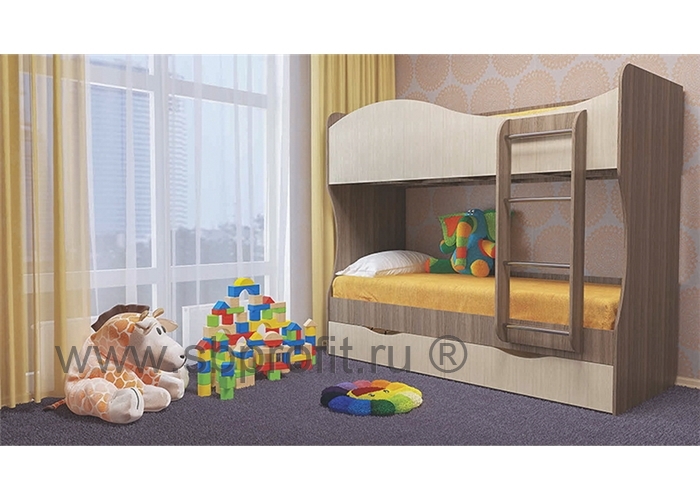 Кровать двухъярусная КУЗЯ - отличное решение для многодетных семей. Она удобна, эргономична и современна. Одна из главных её характеристик - безопасность. Фасад верхнего спального места сделан так, чтобы ребёнок во сне не упал. А лестница, ведущая на второй «этаж», прочная и удобная. Ещё один плюс «Кузи» - экономия места. Спальные места находятся друг над другом, конструкция кровати выполнена с усилениями жесткости, что придает изделию особую прочность. Спальное место кровати имеет размер 800х2000 мм., поэтому в КУЗЕ комфортно и не тесно. Кроме того, модель оборудована двумя выдвижными ящиками. Они двигаются автономно на колёсах, а значит, не повредят покрытие пола. Также ящики вместительны: здесь с легкостью поместится постельное бельё или игрушки.Изготовлен комплекс из качественного ламинированного ДСП толщиной 16 мм класса Е1 - самого популярного материала для производства корпусной мебели, обеспечивающего необходимую прочность и долговечность деталей. Все края обработаны ударопрочной кромкой ПВХ, которая значительно увеличивает срок эксплуатации изделия. Для сборки используется фурнитура ведущих мировых производителей.