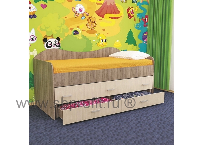 Детская кровать НИМФА – удачно приобретение для небольшой детской. Это компактная двухуровневая кровать со спальными местами 200х90 см. и 190х90 см. Особенность данной модели состоит в том, что нижний ярус кровати выполнен независимым блоком. Нижняя часть кровати полностью выдвигается, а при необходимости задвигается под верхний ярус. Таким образом освобождается место для игр и занятий детей. К тому же, благодаря роликам на нижнем ящике, поверхность пола не повреждается. Также кровать оборудована двумя выдвижными ящиками, куда можно поместить постельное бельё и игрушки.Изготовлена кровать из качественного ламинированного ДСП толщиной 16 мм класса Е1 - самого популярного материала для производства корпусной мебели, обеспечивающего необходимую прочность и долговечность деталей. Все края обработаны ударопрочной кромкой ПВХ, которая значительно увеличивает срок эксплуатации изделия. Для сборки используется фурнитура ведущих мировых производителей.