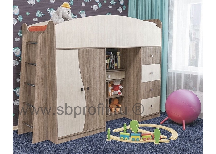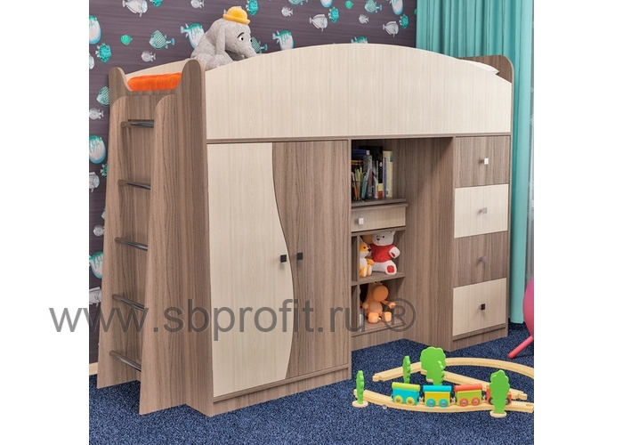 Кровать БЭМБИ является настоящим детским комплексом. Кровать данной модели удобна, эргономична, современна. Плавные радиусные формы кровати задают стиль всего изделия. А цветовая гамма позволяет гармонично вписаться в любую обстановку и украсить своей очаровательной конструкцией интерьер.В своей конструкции кровать содержит все необходимое – шкаф для одежды и вещей с полками и штангой, 4 удобных выдвижных ящика на шариковых телескопических направляющих, имеющих плавный ход и полное выдвижение, и главное – это полюбившаяся всем надёжная и прочная лестница. В нижней части кроватного комплекса БЭМБИ имеется выдвижной столик, под которым удачно расположены полочки для книг и игрушек. Конструкция кровати выполнена с усилениями жёсткости для спального места, что придаёт изделию особую прочность. Спальное место кровати имеет размер 180х80 см.