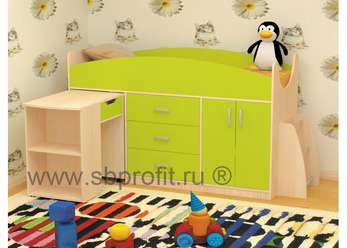 Детская кровать РОКСИ – это сочетание яркости, стиля и функциональности. Здесь каждый элемент расположен максимально практично, удобно и безопасно для ребёнка. Например, спальное место размером 180х70 оборудовано защитными бортиками, чтобы спящий хозяин кроватки не упал. К нему ведёт статичная лесенка, встроенная с торца. Это значит, что можно не переживать за безопасный подъём ребёнка.Ещё один немаловажный элемент – выдвижной столик. Когда кровать находится в собранном состоянии, никто и не догадается, что он скрывается за нишами в левой части комплекса. Благодаря колёсикам, стол легко двигается и не повреждает покрытие пола.