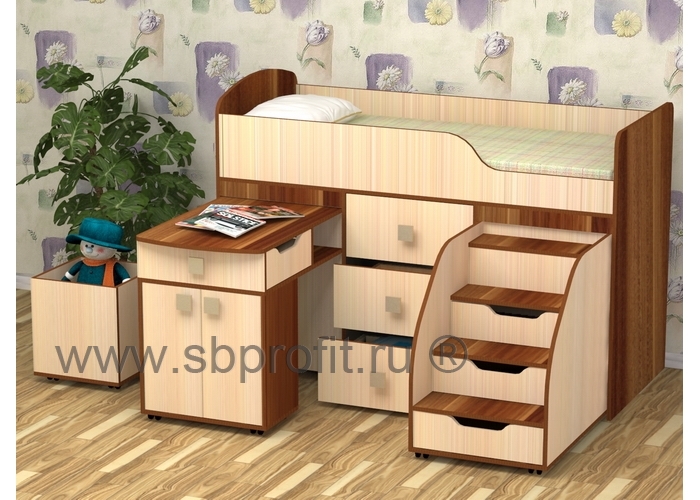 ФЕЯ – это не просто кровать, а целый детский комплекс, где ребёнок может учиться, играть и отдыхать. Кровать выдержана в современном стиле, является очень функциональной, чем и заслужила свою популярность.