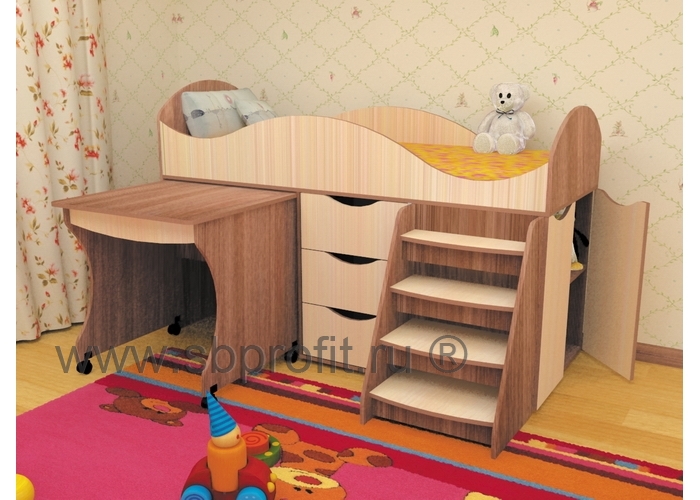 Компактная и универсальная, детская кровать ТОШКА, придётся по вкусу и детям и взрослым. Здесь есть всё для игр и творческих занятий, отдыха и хранения вещей. Так, для крепкого и спокойного сна малыша предусмотрено спальное место размером 180х70 см. Для безопасности с обеих сторон оно оборудовано защитными бортиками. Спускать и подниматься к кровати ребёнок сможет по статичной лесенке, встроенной в корпус кровати.