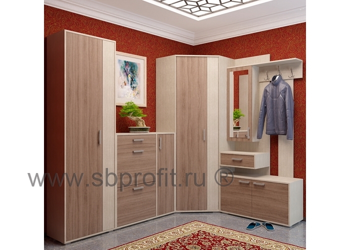 Данная модель прихожей РАССВЕТ-17 включает в себя следующие модульные элементы:- шкаф угловой Аврора