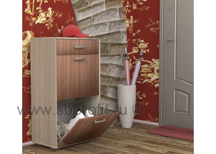 Обувница ОБ-2 вмещает до 20 пар обуви. И это несмотря на небольшую глубину изделия – всего 38 см. А благодаря ящикам с откидными дверцами и специальным удерживающим устройствам, любимые туфли не запылятся и будут на своём месте. Стоит отметить, что обувница – это универсальное изделие. Здесь можно отложить обувь до следующего сезона или же разместить повседневную обувь, чтобы она не мешалась у порога. Также в такой обувнице, как ОБ-3, предусмотрен выдвижной ящик на роликовых направляющих. Здесь удобно хранить перчатки, ключи, зонты. Их же можно разместить и на самой обувнице.Изделие выполнено из высококачественного и экологичного материала – ЛДСП класса Е1 толщиной 16 мм. Края изделия обработаны ударопрочной кромкой нового поколения АБС, которая значительно увеличивает срок эксплуатации изделия. Для сборки изделия используется фурнитура ведущих мировых производителей.