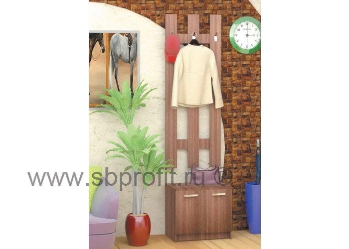 Пожалуй, это самая простая и беспроигрышная конструкция для небольших уютных прихожих, для гостиниц или офисов. Вешалка представляет из себя простую конструкцию, изящно выполненную благодаря своей симметричности. Вешалка содержит 3 крючка. При желании Вы можете дополнить вешалку крючками.В тумбе также нет ничего лишнего – она компактна и функциональна для своей роли. Дополнительно тумба может служить подставкой, сидением, подчемоданником.
