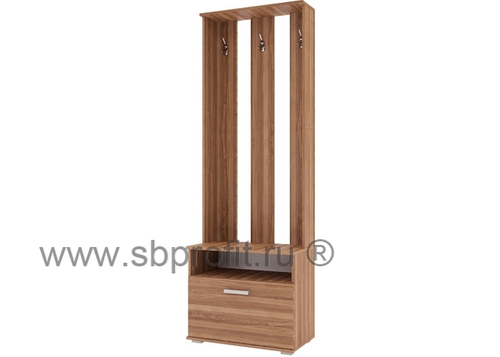 Компактная и удобная, вместительная и функциональная – всё это о прихожей ПР-8. Здесь только самые нужные элементы. Например, в нижней части прихожая оснащена тумбой для обуви с открытой нишей и откидной дверцей. На неё можно поставить сумку или положить перчатки. Верхняя часть прихожей представляет собой открытую надстройку с тремя крючками и полкой для головных уборов. Прихожая ПР-8 будет интересной находкой для гостиниц, административных учреждений, а также для малогабаритных квартир. Наличие богатой цветовой гаммы  и простота модели позволят Вам подобрать нужный вариант по карману.