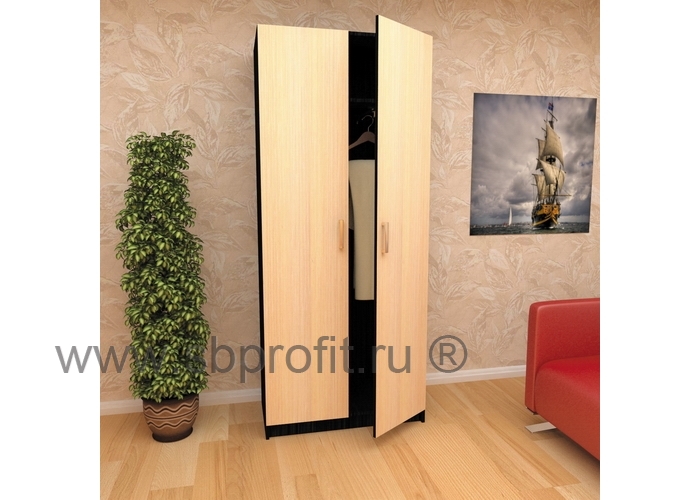 Шкаф САПФИР – универсальный распашной шкаф для офисов, малогабаритных помещений и гостиниц. Эта модель довольна проста, но вместительна и эргономична. Шкаф оснащен выдвижной штангой для одежды – благодаря высоте изделия, одежду можно повесить во всю длину, а значит, она не помнётся. Также имеются пять вместительных ниш в левой части шкафа и широкая полка сверху.Изделие выполнено из высококачественного и экологичного материала – ЛДСП класса Е1 толщиной 16 мм. Все края обработаны ударопрочной кромкой нового поколения - кромкой АБС, которая значительно увеличивает срок эксплуатации изделия. Для сборки используется фурнитура ведущих мировых производителей.