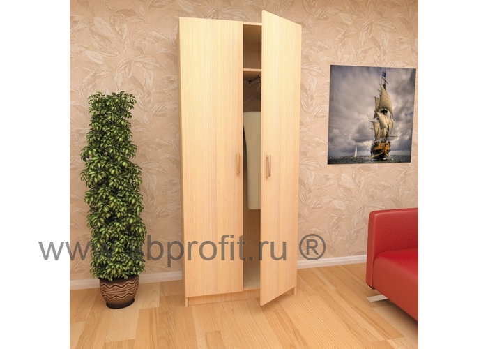 Шкаф САПФИР – универсальный распашной шкаф для офисов, малогабаритных помещений и гостиниц. Эта модель довольна проста, но вместительна и эргономична. Шкаф оснащен выдвижной штангой для одежды – благодаря высоте изделия, одежду можно повесить во всю длину, а значит, она не помнётся. Также имеются пять вместительных ниш в левой части шкафа и широкая полка сверху.Изделие выполнено из высококачественного и экологичного материала – ЛДСП класса Е1 толщиной 16 мм. Все края обработаны ударопрочной кромкой нового поколения - кромкой АБС, которая значительно увеличивает срок эксплуатации изделия. Для сборки используется фурнитура ведущих мировых производителей.