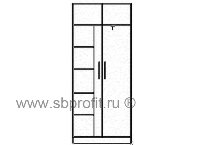 Шкаф САПФИР – универсальный распашной шкаф для офисов, малогабаритных помещений и гостиниц. Эта модель довольна проста, но вместительна и эргономична. Шкаф оснащен выдвижной штангой для одежды – благодаря высоте изделия, одежду можно повесить во всю длину, а значит, она не помнётся. Также имеются пять вместительных ниш в левой части шкафа и широкая полка сверху.Изделие выполнено из высококачественного и экологичного материала – ЛДСП класса Е1 толщиной 16 мм. Все края обработаны ударопрочной кромкой нового поколения - кромкой АБС, которая значительно увеличивает срок эксплуатации изделия. Для сборки используется фурнитура ведущих мировых производителей.