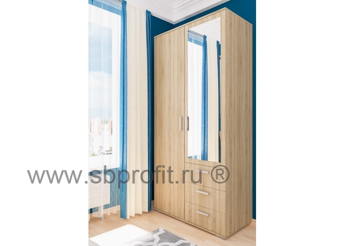 Стильный шкаф в прихожую, детскую или спальню – ШОН-14. Модель содержит широкую штангу для одежды, полки в верхней и нижней частях, а также три выдвижных ящика. Над ними – распашная дверца с зеркалом. Такая конструкция смотрится современно и легко, поэтому ШОН-14 станет украшением любого интерьера.Изделие выполнено из высококачественного и экологичного материала – ЛДСП класса Е1 толщиной 16 мм. Для сборки используется фурнитура ведущих мировых производителей.