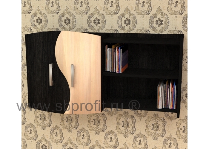 Полка навесная ПН-3 состоит из двух частей: две полуоткрытые полки и небольшой шкаф с полками и фигурными распашными дверцами. Именно эта часть придаёт всему изделию необычный вид. Крыша полки создает дополнительную рабочую поверхность, куда можно поставить любимые аксессуары или цветы. К тому же полка универсальная и собирается на левую или правую сторону, что является очень удобным при формировании дизайна помещения. Полка модели ПН-3 – удачное приобретение для офиса и дома.