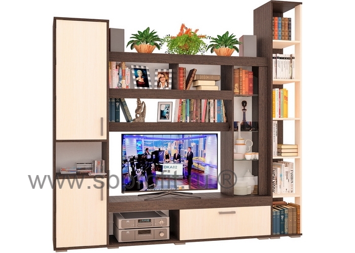 Такое сочетание элементов послужит украшением гостиной и функциональным помощником, ведь набор изобилует шкафами, нишами и различными полочками. СИТИ-1 отлично впишется как в малогабаритные квартиры, так и в просторные гостиные.
