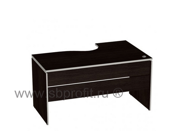 В столе одно отверстие под кабель-канал в комплекте с заглушкой.Изготовлен из ЛДСП 25/18 мм., кромка ПВХ 2 и 1 мм.