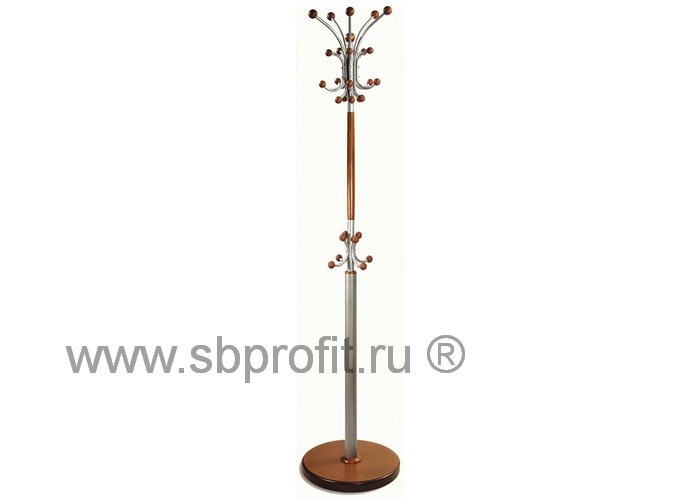 Эта серия напольных вешалок смотрится особенно эффектно, т.к. в моделях металл, окрашенный в цвет металлик, чрезвычайно эффетно сочетается с натуральным деревом, тонированным под орех.Особенно красиво в вешалках этой серии смотрятся массивные деревянные основания, выполненные в форме круга методом гнуто-клееного шпона, что придает вешалкам стильность и устойчивость. Такое сочетание материалов позволяет размещать вешалки в любом интерьере, имеющем хоть небольшой оттенок модернизма.