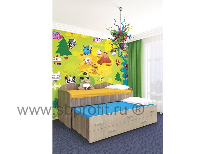 Детская кровать НИМФА – удачно приобретение для небольшой детской. Это компактная двухуровневая кровать со спальными местами 200х90 см. и 190х90 см. Особенность данной модели состоит в том, что нижний ярус кровати выполнен независимым блоком. Нижняя часть кровати полностью выдвигается, а при необходимости задвигается под верхний ярус. Таким образом освобождается место для игр и занятий детей. К тому же, благодаря роликам на нижнем ящике, поверхность пола не повреждается. Также кровать оборудована двумя выдвижными ящиками, куда можно поместить постельное бельё и игрушки.Изготовлена кровать из качественного ламинированного ДСП толщиной 16 мм класса Е1 - самого популярного материала для производства корпусной мебели, обеспечивающего необходимую прочность и долговечность деталей. Все края обработаны ударопрочной кромкой ПВХ, которая значительно увеличивает срок эксплуатации изделия. Для сборки используется фурнитура ведущих мировых производителей.