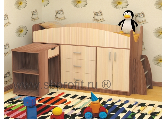 РОКСИ также оборудована тремя вместительными ящиками и небольшим шкафом. На своё усмотрение здесь можно разместить как постельные принадлежности, вещи, так и игрушки.